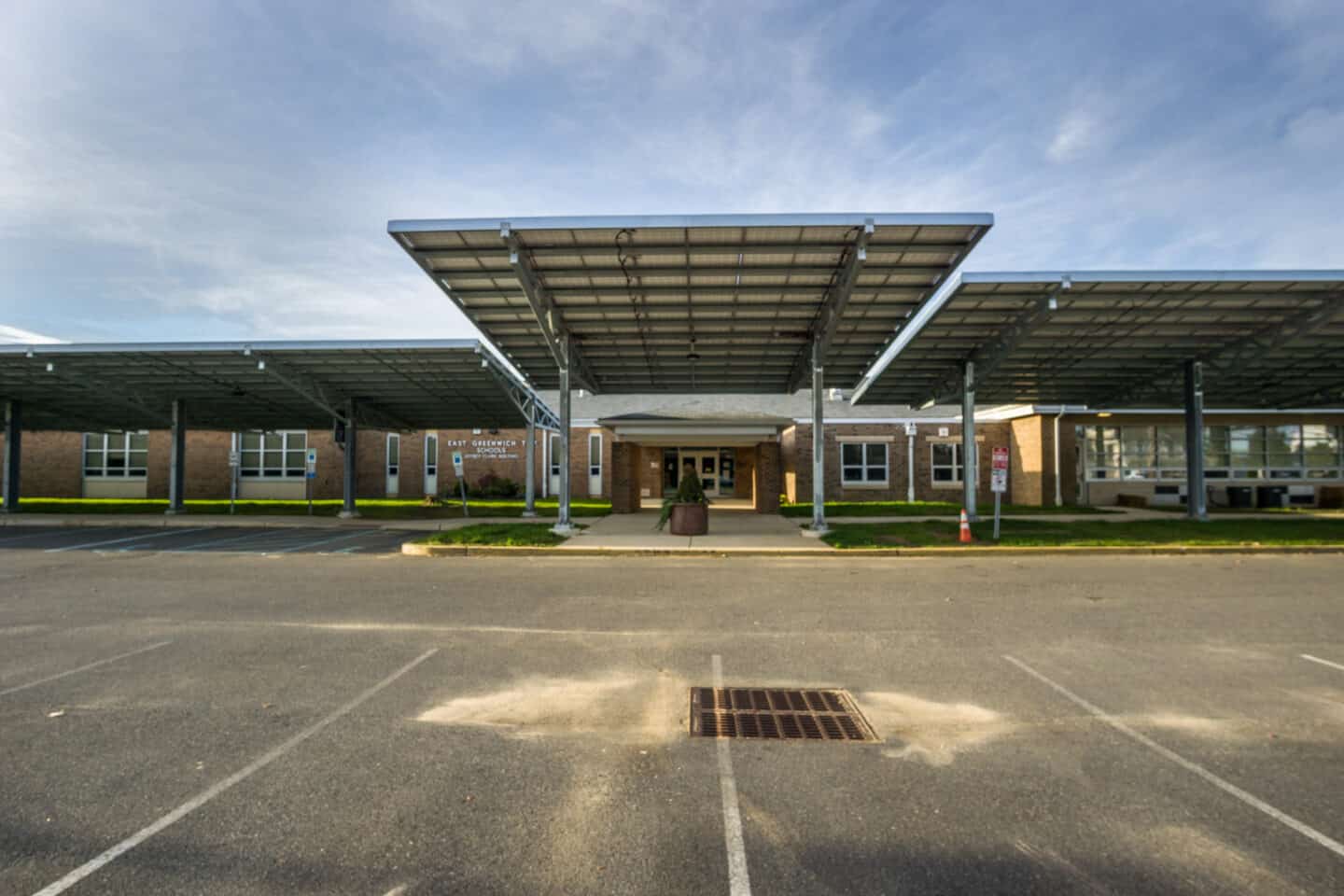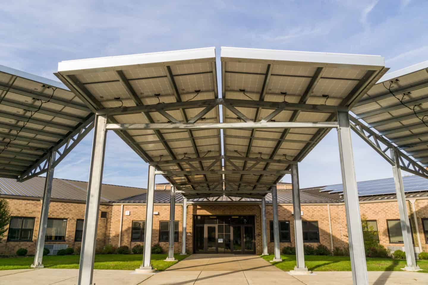 Projects Jeffrey Clark School Location: East Greenwhich Township, NJ Size: 1.7MW Racking Type: T and A Frame Solar Carport Industry: Education Challenges A Frame Array used as an entrance to the school More projects using Solar Carport View All Projects Cargo Burlington, NJ Folsom Folsom, NJ Westchester White Plains, NY